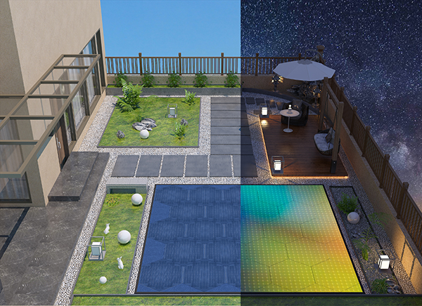 光能发电地砖不仅外观时尚高端,还能够高效发电,为您的别墅带来清洁能源。不论是庭院还是露台,都能轻松安装,实现自给自足的清洁能源供应,打造绿色生活空间。