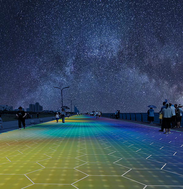 ▲光能宝盒发电地砖夜间景观亮化效果